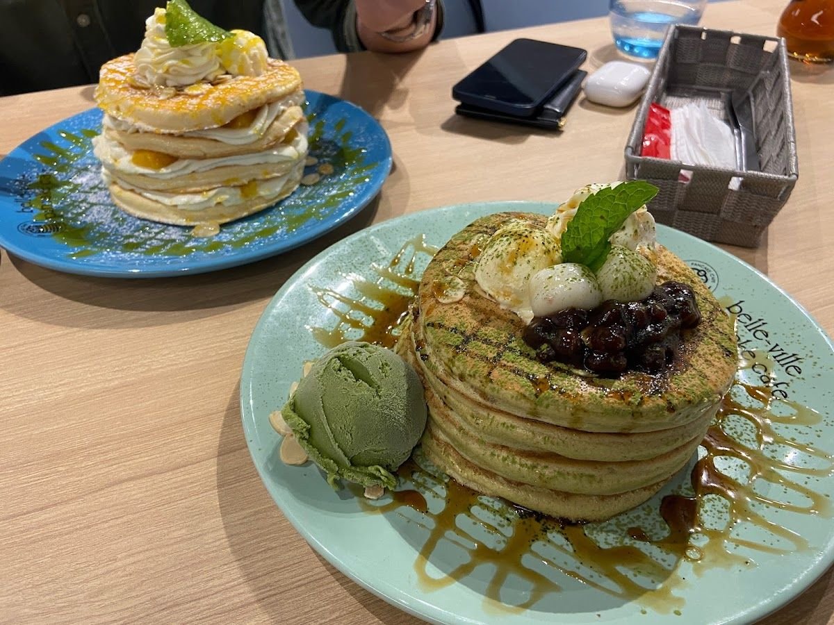 Pancake Cafe Belle-Ville originates from Osaka Japan established in 1958. It's popular flagship store is located at Umeda Whity.We are famous for our original made-to-order fresh meringue mille-feuille pancakes. Millefeuille (French for “thousand layers”) pancakes, is included with homemade whipped Hokkaido cream, stacked from 2 to 8 layers.