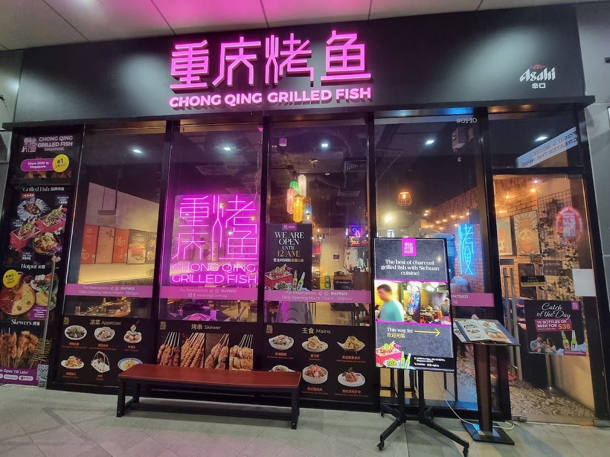 Chong Qing Grilled Fish (CQGF) presents the best of charcoal-grilled fish with Sichuan hotpot, as well as other classic and modern renditions of Sichuan cuisine. With its first dining concept set up in 2010 in Singapore, Chong Qing Grilled Fish is the first to bring to the local F&B scene a best representation of the vibrancy and multiplicity of Chongqing cuisine.If Fish isn't on your cravings list, CQGF also offers the best of local Zi Char dishes like Sweet-and-Sour Pork, Salted-Egg Calamari, Garlic Butter Lala, Fried Rice and other local delicacies, in addition to freshly barbequed Chinese style Skewers and cold dishes like Century Egg, Black Fungus and Chilli Chicken. In addition, during the day, Set lunches of Fish Fillets and Bento sets (with fruits, sides and cold dishes) are available for dine-in and takeaway. So if you're planning to satisfy your Mala Fish cravings or late night Kao Chuan Skewer cravings with Beijing-styled draft beers or a bottle of refreshing Tsing Tao, or book the venue for an event or company catering, be sure to make a reservation at 91479831 (Whatsapp/Call)