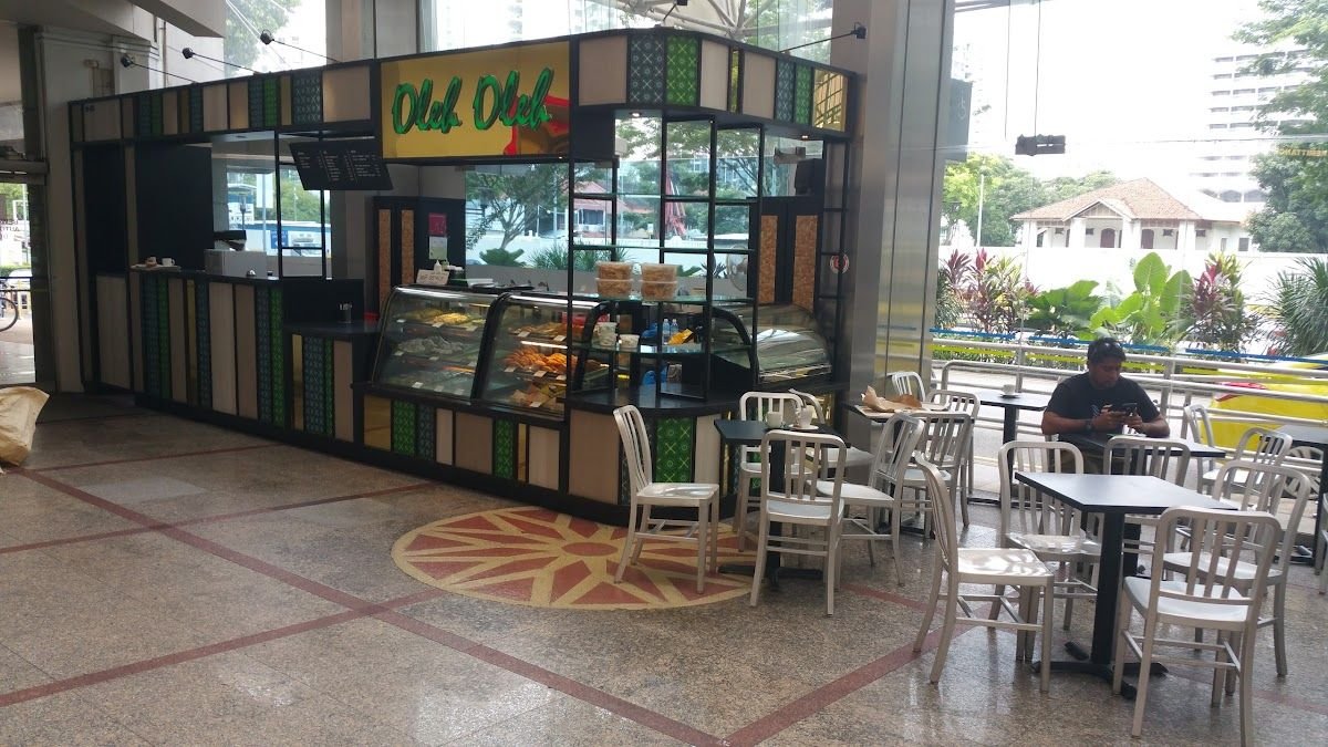 Welcome to Oleh Oleh, where we offer a delicious selection of traditional Malay kuehs, coffee, tea, and juices. We are located in the open concourse just outside HSBC, with a few tables available for our patrons to enjoy their snacks in air-conditioned comfort.Our self-service cafe is the perfect place to grab a quick snack or meal while waiting for your transportation. Our prices are very reasonable, making us a convenient and affordable option for those on the go.We are proud to offer a range of sweet and savory snacks, including our popular Talam Keladi, made from tapioca flour and coconut milk with yam giving the kueh's top layer the nice purplish colour.One of our signature items is our ondeh ondeh. Our glutinous rice balls are filled with gula Melaka and have a pandan-scented dough that is thick enough to provide a good bite. The sweet filling is luscious and a crowd favourite.