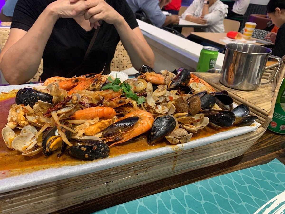 The Sampanman is a unique dining concept that pays homage to the traditional seafarers of Southeast Asia. Our restaurant offers a delightful culinary experience centred around fresh seafood and inspired by pastoral offshore villages.Created by Arteastiq Group, known for its successful halal-certified Louisiana's Seafood Truck and "seafood bucket" concept Cajun on Wheels, The Sampanman celebrates the ingenuity of ethnic groups like the orang laut who lived on coastal islands and made a living from fishing. These communities had access to an abundance of fresh seafood, which forms the foundation of our menu.A highlight of dining at The Sampanman is the captivating sight of fresh seafood adorning custom-made griller sampans. This visual spectacle creates fond memories and adds to the enjoyment of the meal. Additionally, we offer add-on options such as macaroni, allowing guests to savour the luscious sauce and incorporate starchy elements into their dining experience.One of our signature dishes is the Truffle Crab Bee Hoon, a delicious combination of crab, rice vermicelli, and a milky broth infused with yam, Nan Bai, and truffle paste. This hearty and addictive dish is sure to satisfy your taste buds. Another must-try is the Butterfly Tiger Prawn, grilled over charcoal and served with a refreshing Vietnamese green sauce that complements its flavours perfectly.In line with Singaporean dining customs, our menu reflects the diverse culinary preferences of the locals. We offer dishes like Curry Fish Head, Satay, Mala Xiang Guo, and grilled chicken cutlet with chips, allowing guests to experience the vibrant "pattern" of Singaporean dining. To enhance the dining experience further, we provide a variety of sauces and sides, including skewers, Har Cheong Squids, stir-fried Conch Pearl (Gong Gong), and cockles.Situated at the iconic Jewel Changi Airport, The Sampanman's first outlet offers a strategic location for both tourists and travelling Singaporeans. Easily accessible as part of their travel plans, our restaurant provides an excellent opportunity to enjoy fresh seafood in the heart of this renowned shopping destination.