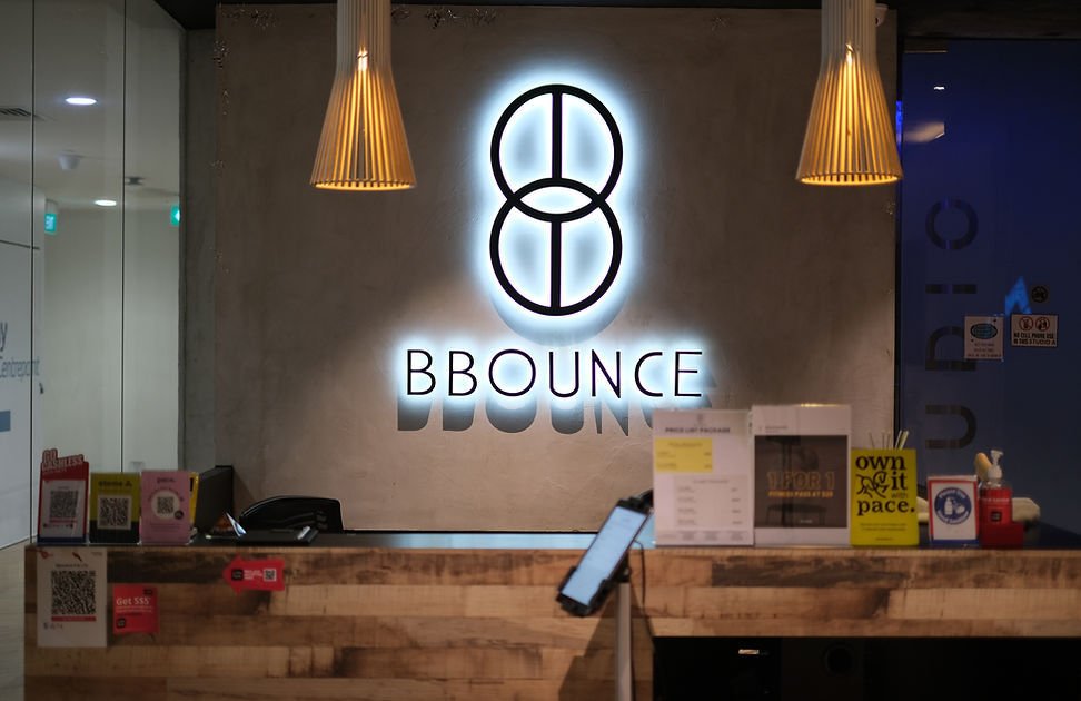 BBounce (pronounced as B-Bounce) Studio is Singapore's first dedicated rebounding fitness studio that offers a range of comprehensive strength and cardio workouts on rebounders.Hybrid Rebounding, the first of its kind in Singapore, is unique to the BBounce Fitness Method.It incorporates mini trampolines with resistance bands, weights and strength training to give you a dynamic workout.We have reinvented workouts to be fun, inspiring and exciting!Besides that, our signature body-changing bootcamp workout also offers individuals the chance to go the extra mile.Consisting of a mixture of interval cardiovascular and strength workouts, our bootcamp classes focus on different muscle groups every day so that you get a thorough workout unlike any other.See and feel for yourself why it has gained cult status amongst celebrities, models and even professional athletes.