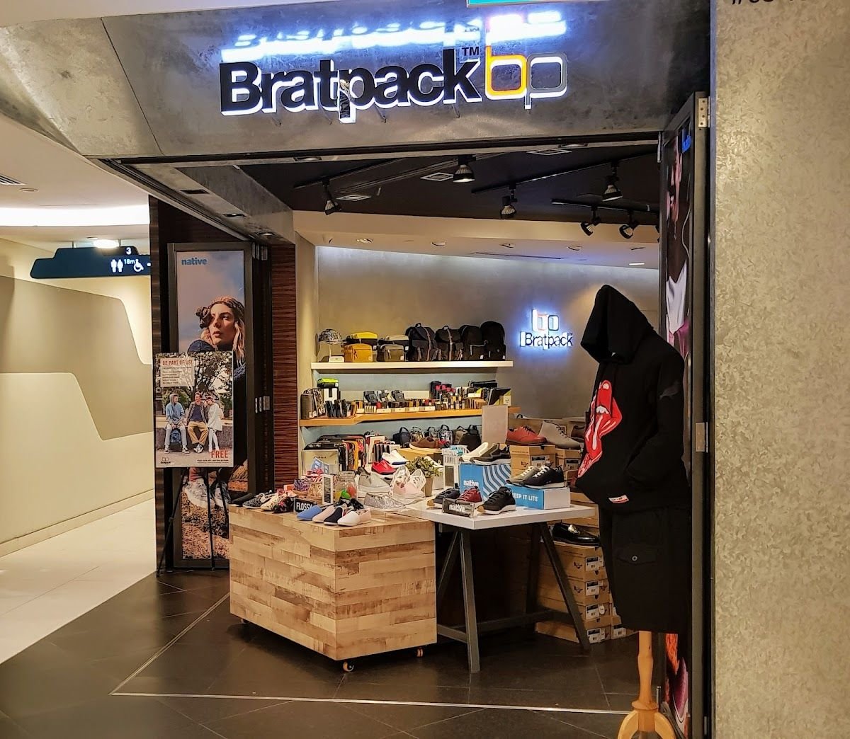 Bratpack sells clothings, backpacks and other footwear catering to the younger crowd with a taste for adventure and an eye for design.