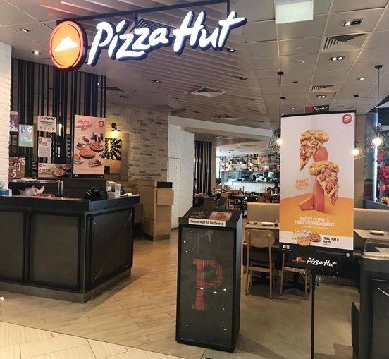 Pizza Hut operates in 84 countries and territories throughout the world under the name "Pizza Hut" and features a variety of pizzas with different toppings as well as pasta, salads, sandwiches and other food items and beverages.The distinctive decor features a bright red roof.